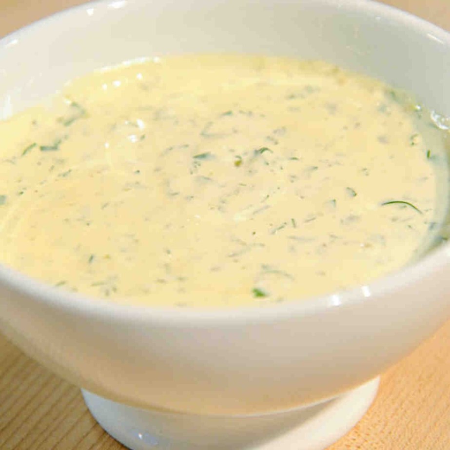 Gribiche: Mayonnaise, hard cooked eggs, mustard, cornichons, parsley, chervil and tarragon.