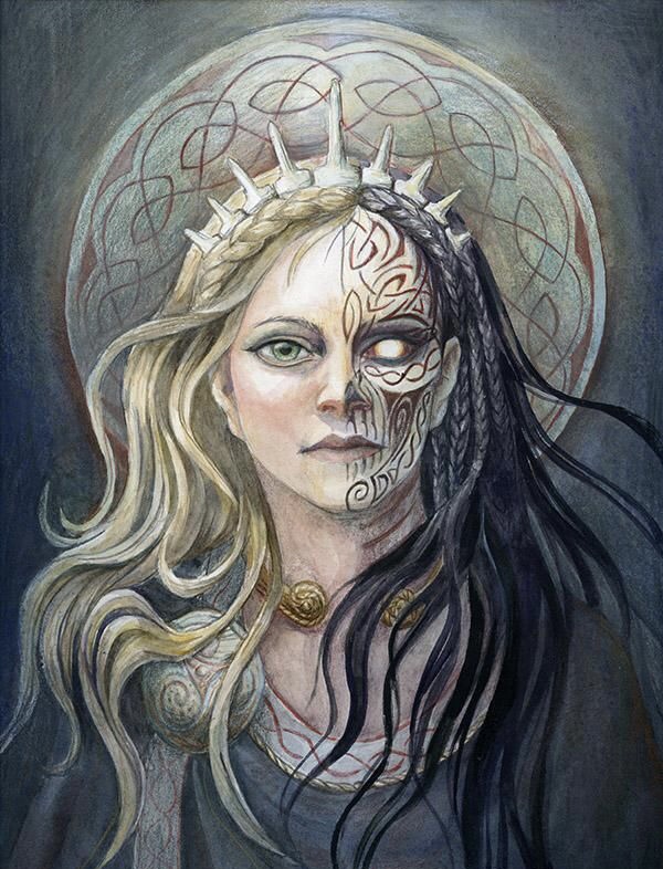 Hel is generally presented as being rather greedy, harsh, and cruel, or at least indifferent to the concerns of both the living and the dead. However, her personality is little-developed in what survives of Old Norse literature. She’s mostly mentioned only in passing. She’s described as having the appearance as being half-black (or sometimes blue), half-white, and with a perpetually grim and fierce expression on her face.