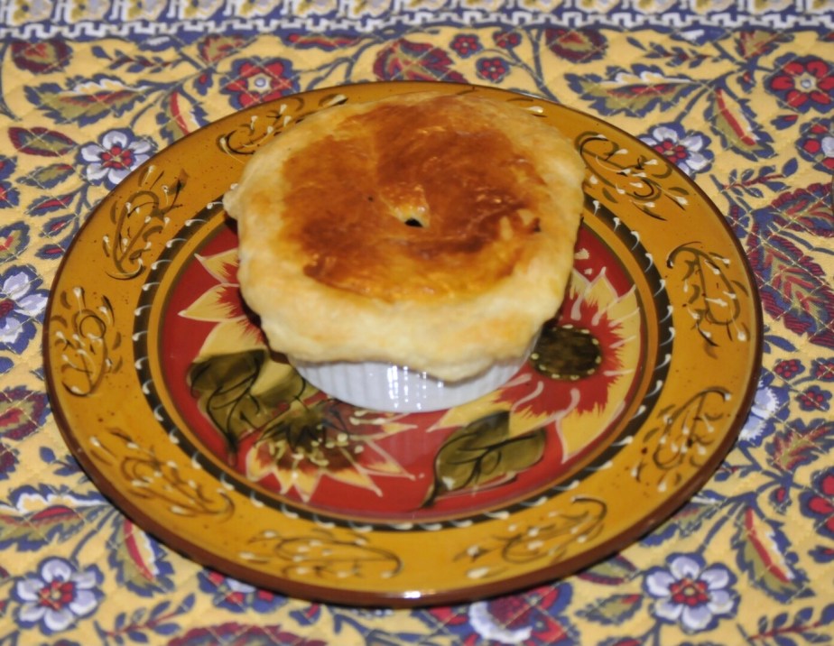 Preheat oven to 450 or directions on puff pastry box. Add two tablespoons of mushroom Duxelle to a ramekin. Add 3 -6 snails depending upon size and preference. On top place a 1 teaspoon of butter. Cut puff pastry to size to cover ramekin. Crimp puff pastry over the ramekin and brush with a beaten egg. Cut a small slit in puff pastry to release steam. Place in oven until puff pastry if golden brown. Serve immediately.