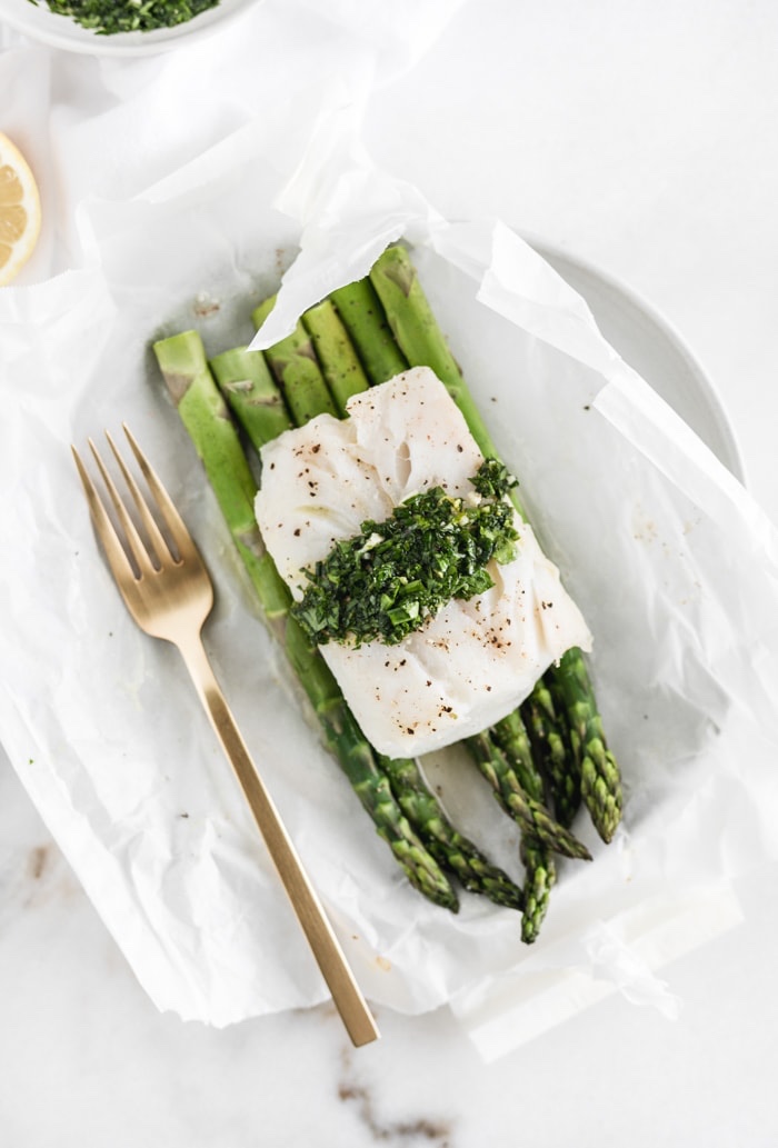 To seal, tightly roll the edges towards the fish to ensure no juices leak out while cooking.