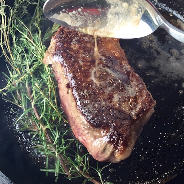 Cook for 4-8 minutes until steak reaches internal temperature of 120.