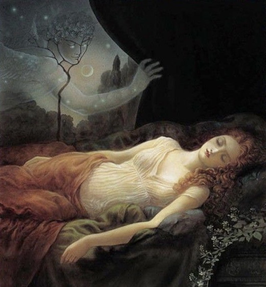 Cupid, captivated by the beautiful Psyche, visits her each night. He keeps his true identity a secret although Psyche has asked him to reveal himself. “All I ask of you is to love me. I would rather you love me as an equal than adore me as a god,” he replies.