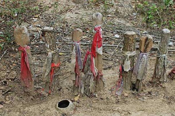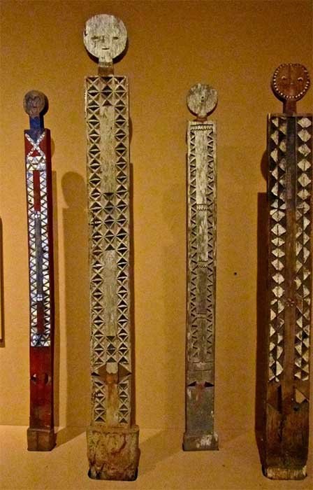 Vigango statues are created from the wood these sacred forests provide. The wood is resistant to termites and very dense. The statues stand 4 feet (1.22 meters) tall and have unique carved triangle etchings that symbolize abstract forms of identity that once bestowed the deceased Mijikenda elder they represent.