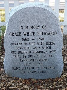 One of the most famous witches in Virginia’s history is Grace Sherwood, whose neighbors alleged she killed their pigs and hexed their cotton. A farmer, healer, and midwife, she was accused by her neighbors of transforming herself into a cat, damaging crops, and causing the death of livestock. She was charged with witchcraft several times. Sherwood was accused of bewitching her neighbor, Elizabeth Hill, causing Hill to miscarry. Other accusations followed and Sherwood was brought to trial in 1706.