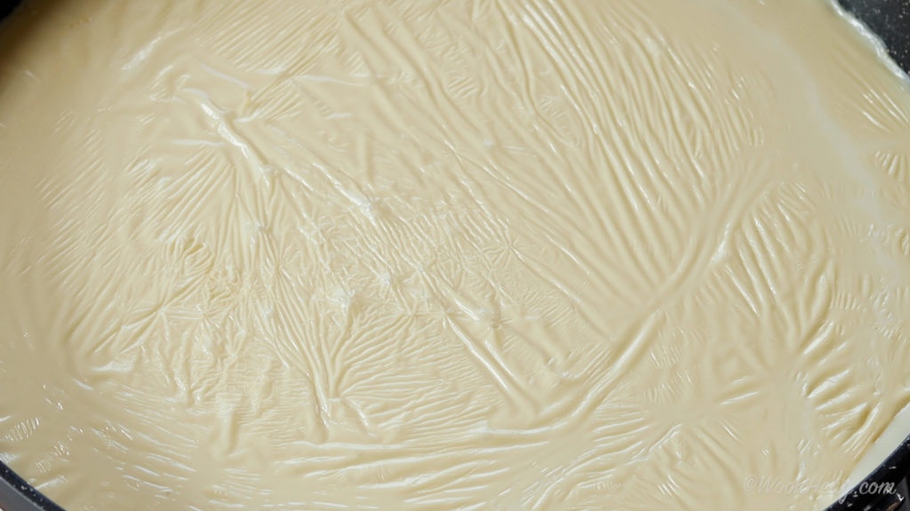 After several minutes, you will notice the surface of the soy milk beginning to thicken. At this point, the temperature of the soy milk will probably be 140°F. Using an uchiwa (Japanese fan) or a flat piece of cardboard (about 8 by 11 inches), gently fan the air above the pan to cause a drop in air temperature; this, in turn, will cool the surface of the warm soy milk. When the surface of the soy milk cools but the liquid beneath is still warm, wrinkles will form and the surface will thicken, making sheets of nama yuba.