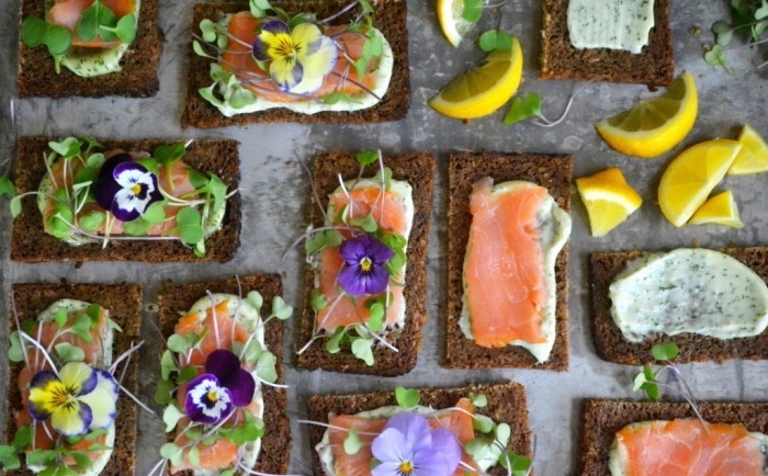 Lay half of the bread slices out on the work surface and spread with half of the yuzu and chive butter.
