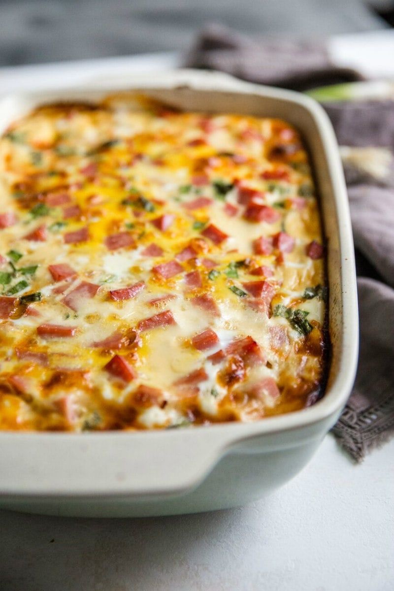 Bake or boil potatoes. once cool, peel and slice. Cook bacon, ham and onion in a large sauté pan. Add potatoes. Brown well. Add mushrooms and tomato. Cook five minutes. Blend egg, half & half and other ingredients. Transfer meat and potato mixture to a large baking dish. Pour egg mixture over it evenly. Bake at 350 degrees for 20 minutes or until firm and light brown. Serve.