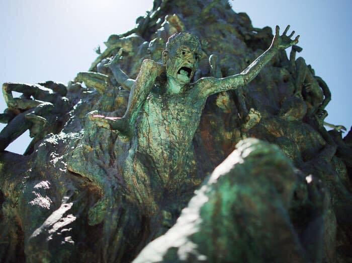 Memorial sculptures at Miami Beach, Florida. Statues by artist Kenneth Treister, on display as part of a memorial depicting thousands of victims crawling into an open hand representing freedom.