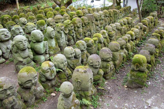 If you visit Arashiyama, the hills lying to the west of Kyoto city, you’ll find the Otagi Nenbutsu-ji temple. Standing all over the temple grounds, are 1,200 statues of rakan, the original disciples and followers of the Buddha, carved from stone and covered with moss. They were carved decades ago by believers who worshipped at the temple, and were donated as a blessing. Due to the many different sculptors involved in the project, many of whom were amateur, all the statues have different expressions, poses, and artistic styles. They may be praying, laughing, holding birds or even goblets. These differences add a touch of whimsy to this lovely temple, making it a true hidden treasure.