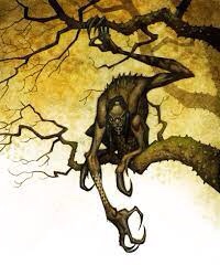 The asanbonsam terrorizes mankind from southern Ghana in Togo and along the Ivory Coast of Africa. Although it is rarely encountered, it looks like a human with hooks for its hands and feet. Its preferred method of hunting is to patiently sit in a tree and wait for some luckless individual to pass directly underneath it. When this happens, the asanbonsam will use its hooks to snatch up its prey and drain it dry of blood. When times are lean, it will venture into a village at night and sip blood from a sleeping person’s thumb. Fortunately, the regular sacrifices of a goat and the spilling of its blood on the ground will keep it satisfied enough to not hunt within the village.