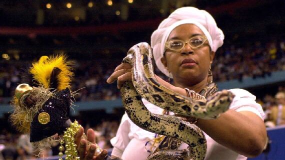 Li Grande Zombi is the major serpent spirit of worship among New Orleans Voodooists. In New Orleans Voodoo, snakes are not seen as symbols of evil as in the story of Adam and Eve. Snakes are considered to be the holders of intuitive knowledge—knowing that which cannot be spoken. Women often dance with serpents to represent the spiritual balance between the genders. Voodoo rituals in New Orleans almost always include a snake dance to celebrate the link to the ancient knowledge. The origin of Li Grande Zombi can be traced to the serpent deity Nzambi from Whydah in Africa. According to the Bantu Creation story, Nzambi is the Creator God: