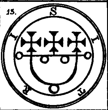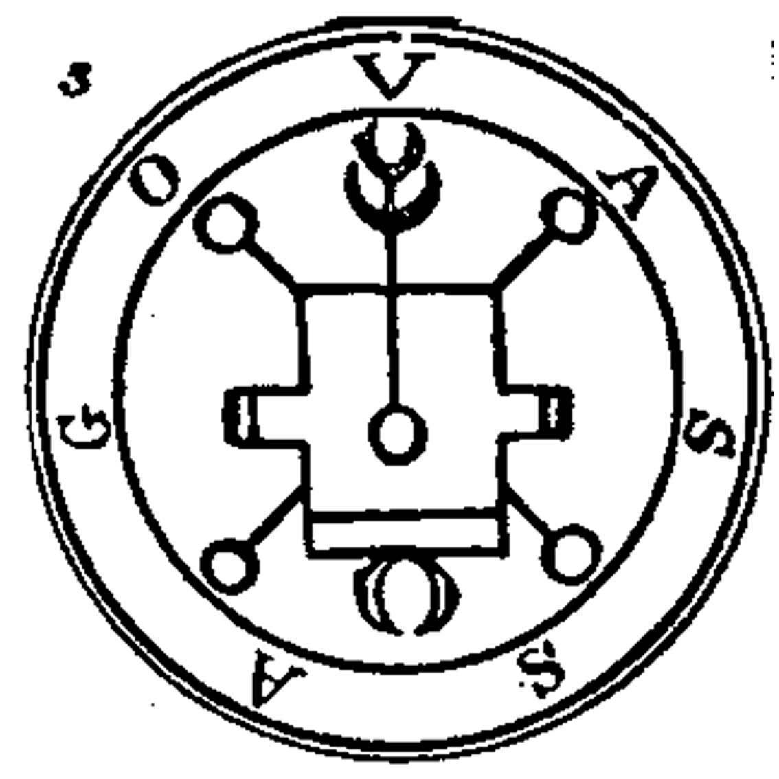 He answereth truly of things Hidden or Secret. He causeth Diseases and cureth them. Again, he giveth great Wisdom and Knowledge in Mechanical Arts; and can change men into other shapes. He governeth 36 Legions of Spirits. And his Seal is this, which is to be worn as aforesaid.