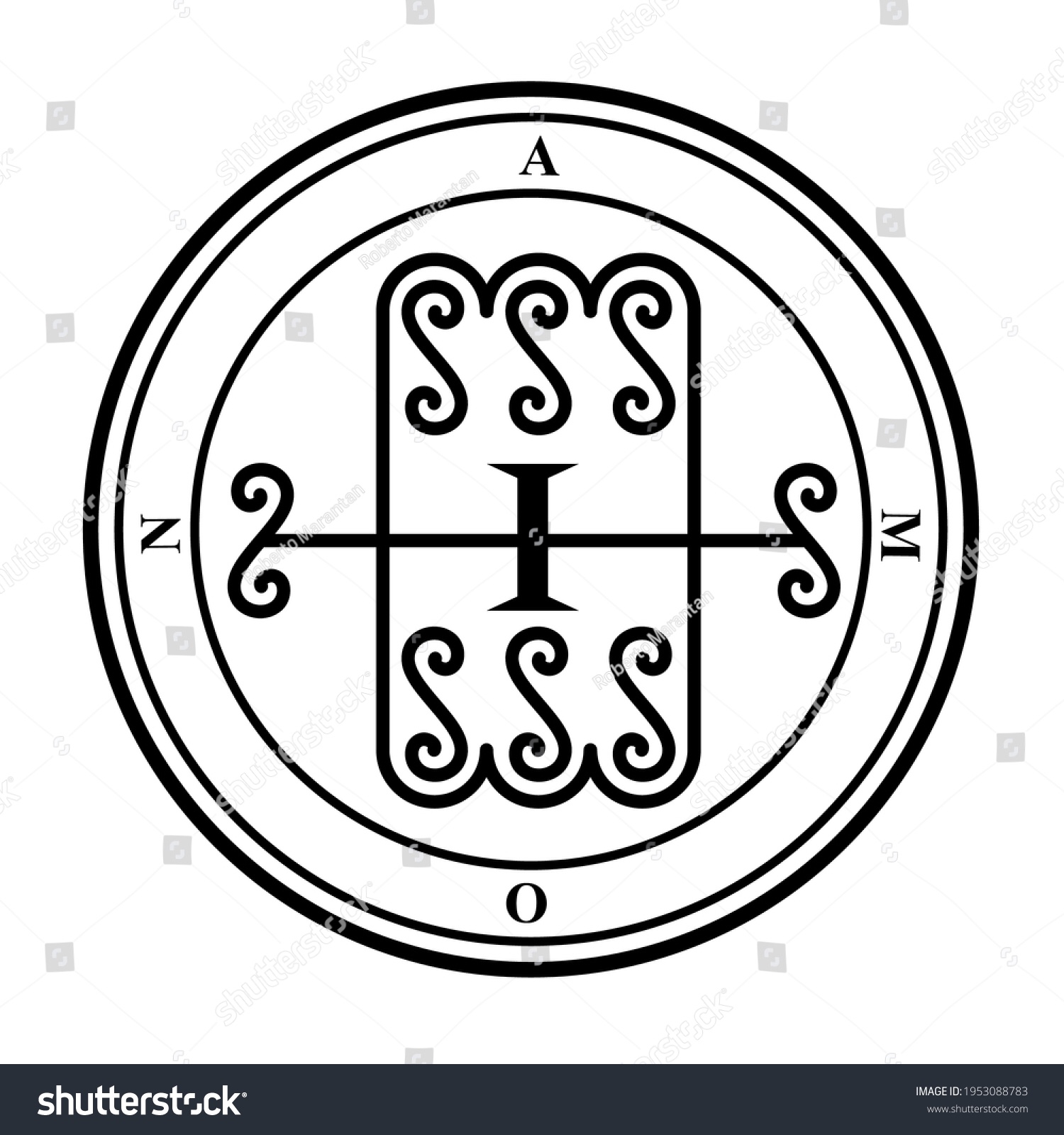 He is to be observed towards the West. He is of the Order of Dominations. He hath under him 200 Legions of Spirits, and part of them are of the Order of Angels, and the other part of Potentates. Now if thou callest this Spirit Paimon alone, thou must make him some offering; and there will attend him two Kings called Labal and Abalim, and also other Spirits who be of the Order of Potentates in his Host, and 25 Legions. And those Spirits which be subject unto them are not always with them unless the Magician do compel them. His Character is this which must be worn as a Lamen before thee.